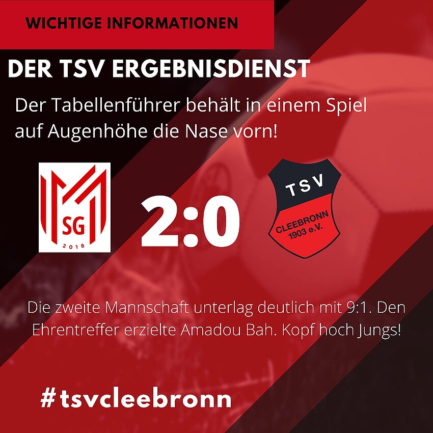 Der TSV Cleebronn geriet schon in der achten Minute in Rückstand, als Nils Melber das schnelle 1:0 für den SGM MassenbachHausen erzielte. Yannik Lieberherr versenkte die Kugel zum 2:0 für den SGM MassenbachHausen (36.). Mit 23 gesammelten Zählern hat der TSV Cleebronn den fünften Platz im Klassement inne. Sieben Siege, zwei Remis und drei Niederlagen konnten bislang verbucht werden. In den letzten fünf Begegnungen holte der TSV Cleebronn insgesamt nur sieben Zähler.