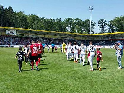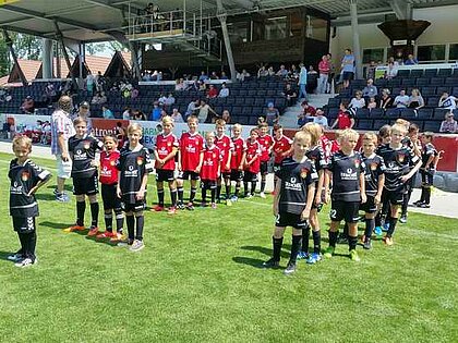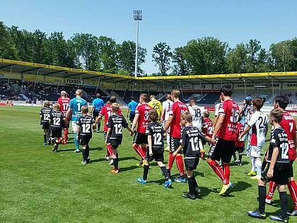 Das vergisst man nicht so schnell. Einlaufen mit den Profis der Bundesliga in die Mechatronic-Arena Aspach. Dies durften die Spieler der Cleebronner E-Jugend am 05.07.2015.