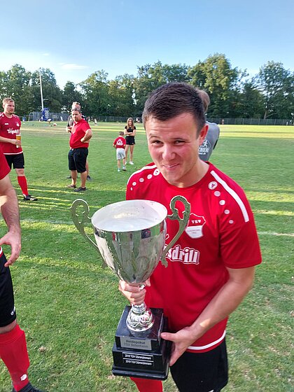 Bei der Siegerehrung wurde die Leistung des TSV Botenheim mit dem Aufstieg und dem Sieg im Bezirkspokal hervorgehoben. Den Heidepokal durfte Louis Thämert mit großem Freudentaumel an die Mannschaft überreichen.