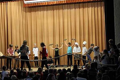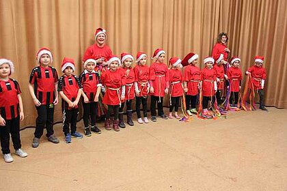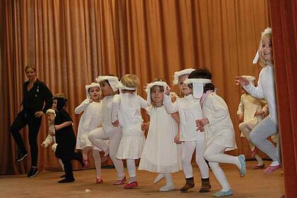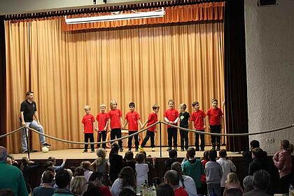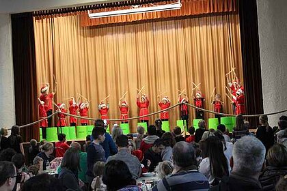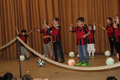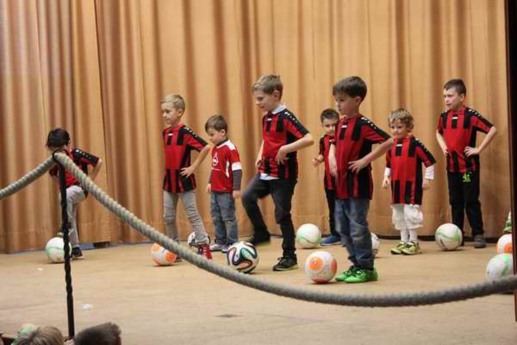Die "Kleine Schäfchen" der Kinderturngruppe ab 3 Jahren machten den Auftakt des Programmes. Anschließend folgten als Gastgruppe "kleine Ballettmäuse". Die Bambinikicker führten den Fussballtanz auf. Die Turngruppe ab der 2. Klasse brachten mit "Flying Sticks - Danza Koduro" Stimmung in die Halle. Danach folgte ein Gastbeitrag der Jazztanzgruppe mit dem "Sonnentanz".