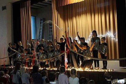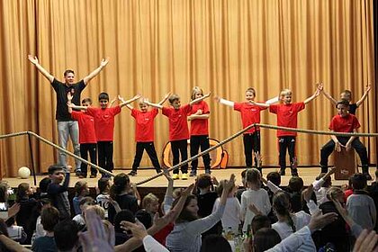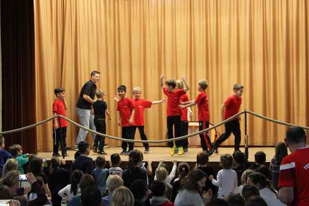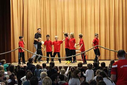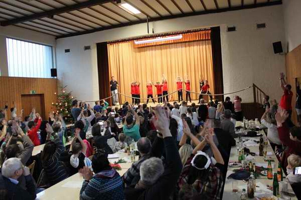 Die F-Jugend zeigte "so feiert Cleebronn". Anschließend zeigte die Jazztanzgruppe nochmals ihr können. Die E-Jugend brachte mit ihrer Darbietung "Holzfäller" viel Holz auf die Bühne. Zum Abschluss zeigten die Kinder ab der zweiten Klasse mit "Hanging Tree" ihr turnerisches Können.