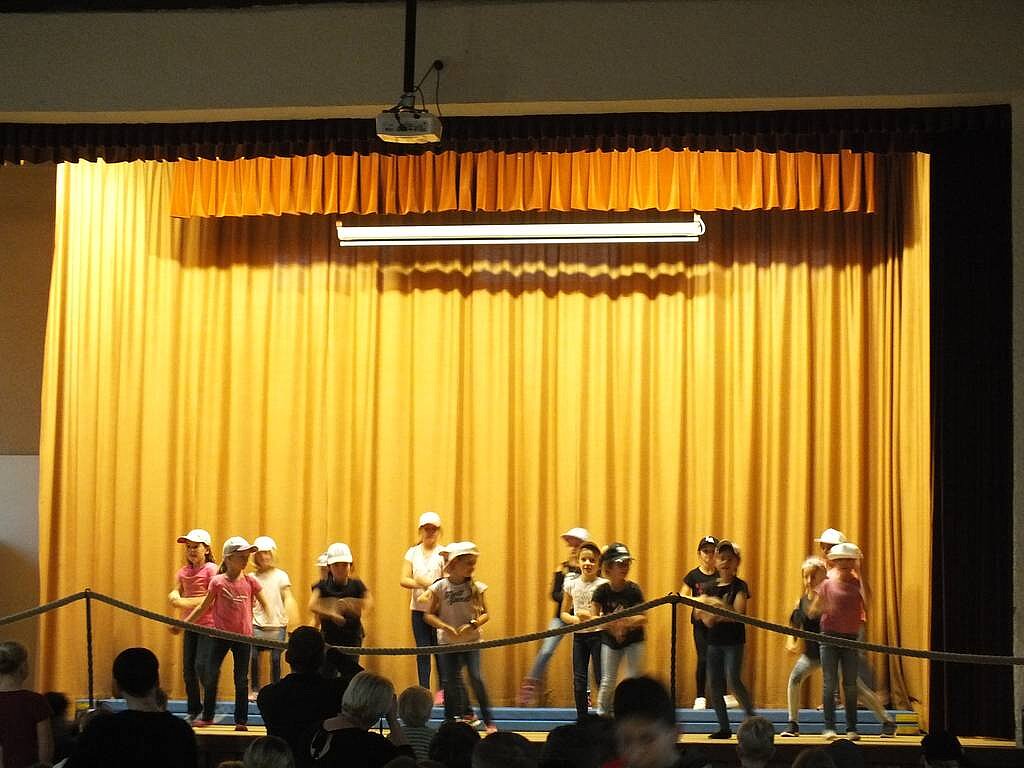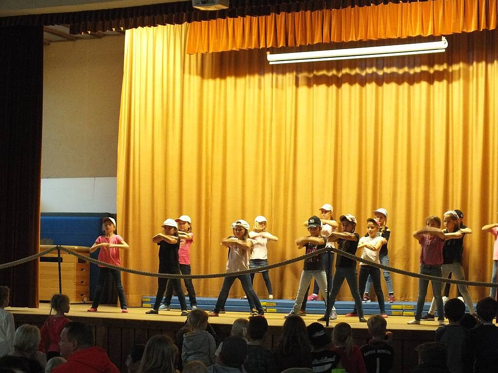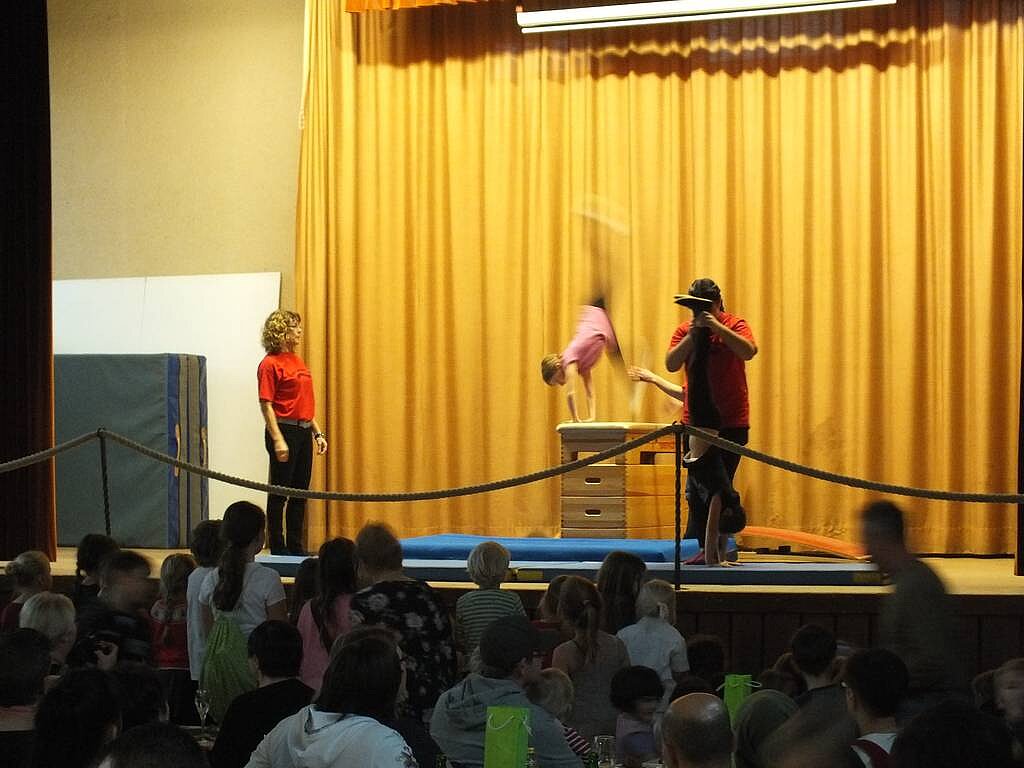 Zum krönenden Abschluss trat die Gruppe ab der 4. Klasse mit einem "Tanztheater" auf. Anschließend warteten die Mädchen mit einer eindrucksvollen Turneinlage auf.